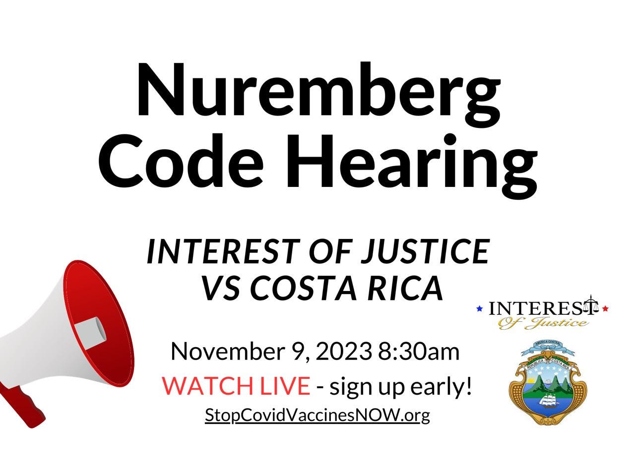 There is a court ORDERED Nuremberg Public Hearing November 9, 2023! Interest of Justice et al vs Costa Rica et al You are invited to watch live as we ask a judge with power to take the covid vaccines off the market in Costa Rica and globally to stop the shots - sign up at