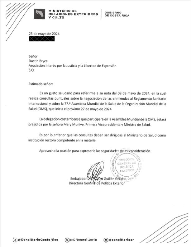 The delegate from Costa Rica has been in direct touch with IOJ this week during WHA77 in regard to our claims. This reason was BRILLIANT to get out of agreeing to continue the treaty in Costa Rica - other countries were all begging to drag it out but not Costa Rica! They KNOW Interest of Justice is correct and we are working things out… without the WHO! We don’t need to drag out a stinkin treaty, we need to protect health and slow the polarization of health which is affecting Costa Ricans health NOW!