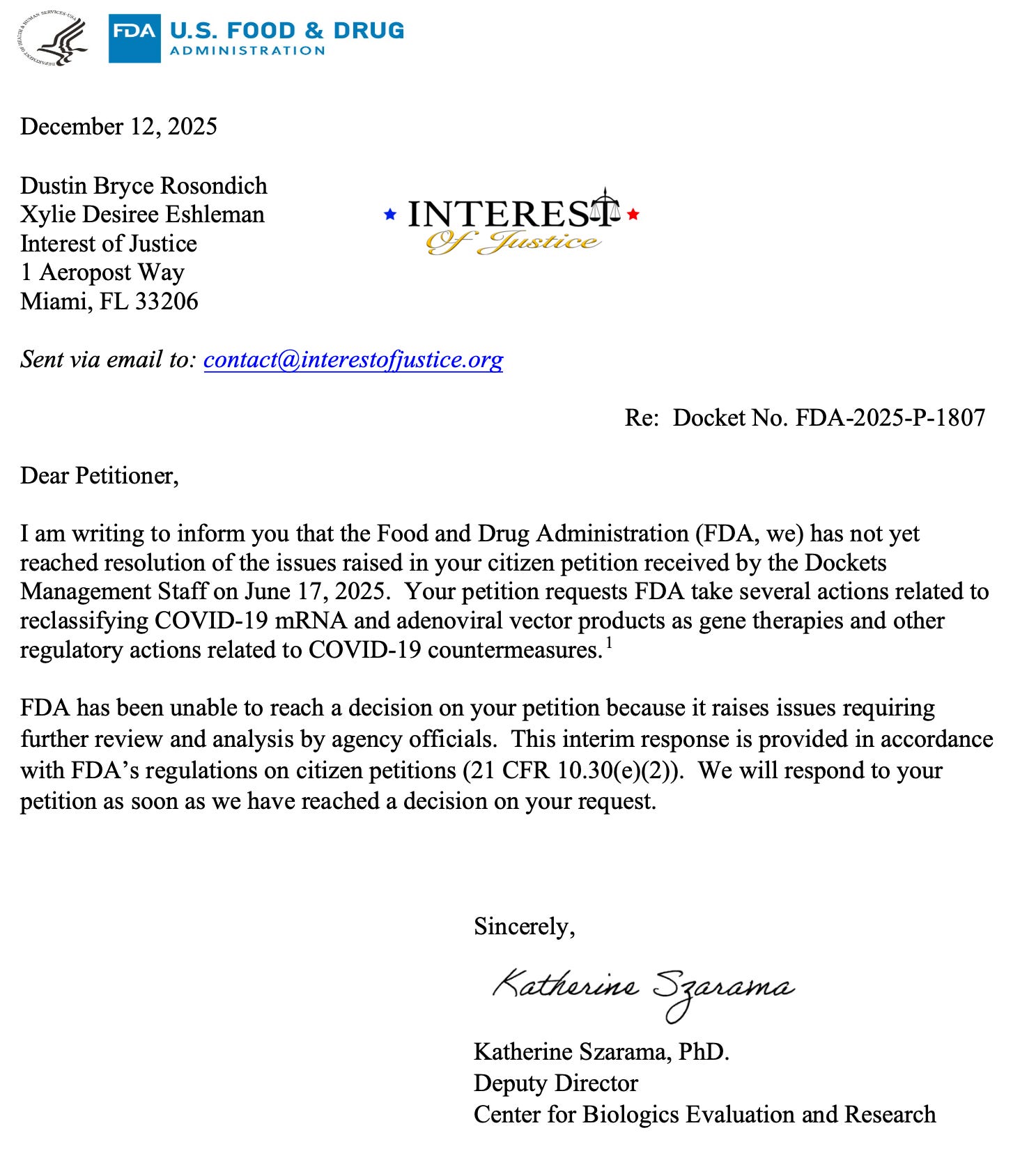 Interest of Justice filed a Citizens Petition with FDA asking a simple question. Are mRNA products gene therapy under FDA’s own guidance?