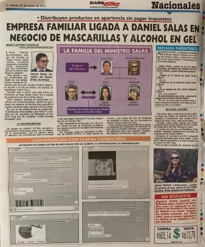 In addition, the home of Miren Martínez Ruiz, a Spanish journalist who received, between April and June 2020, three contracts for the supply of masks for up to $3.5 million, was searched. Also the houses of David Landergren Castro, public accountant benefited from awards for a total of $2.5 million and Miguel Salas Araya, former director of Procurement of Goods and Services of the CCSS.