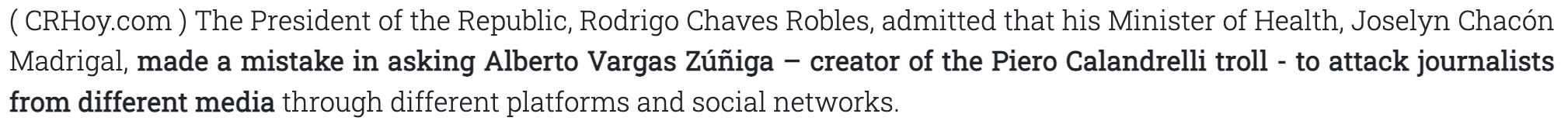 We’re eager to hear what he has to say about democracy considering President Chaves undemocratically refuses to answer any information request or complaint regarding Davos or other issues from IOJ since he got into office 10 months ago.