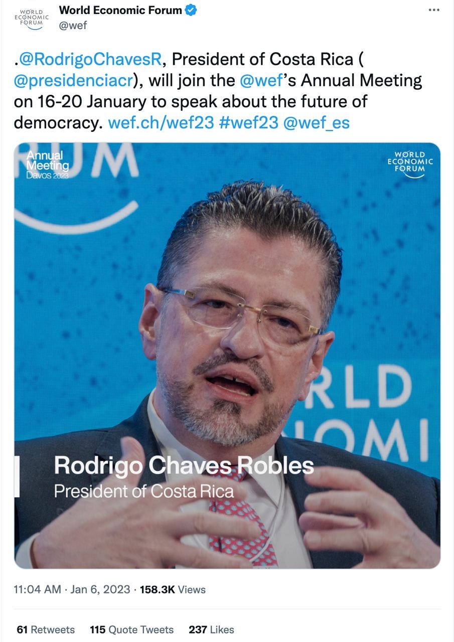 Ex World Bank Pandemic Preparedness Funder Rodrigo Chaves (now Costa Rica President) To Speak At Davos On Future Of Democracy & More News