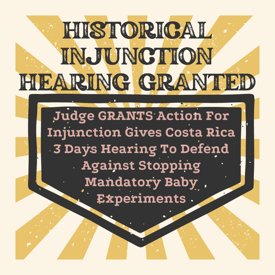 Costa Rica's Tyranny Knows No Bounds. Experimental Baby Mandates, Undue Influence From the W.H.O. and Inactive Court Systems. One Court Finally Grants 3 Day Injunction Hearing. Response Due TODAY!