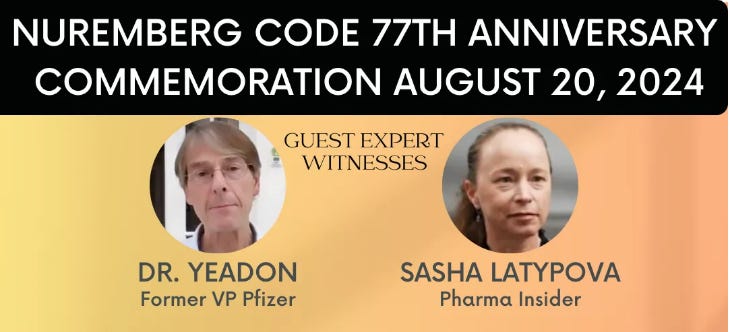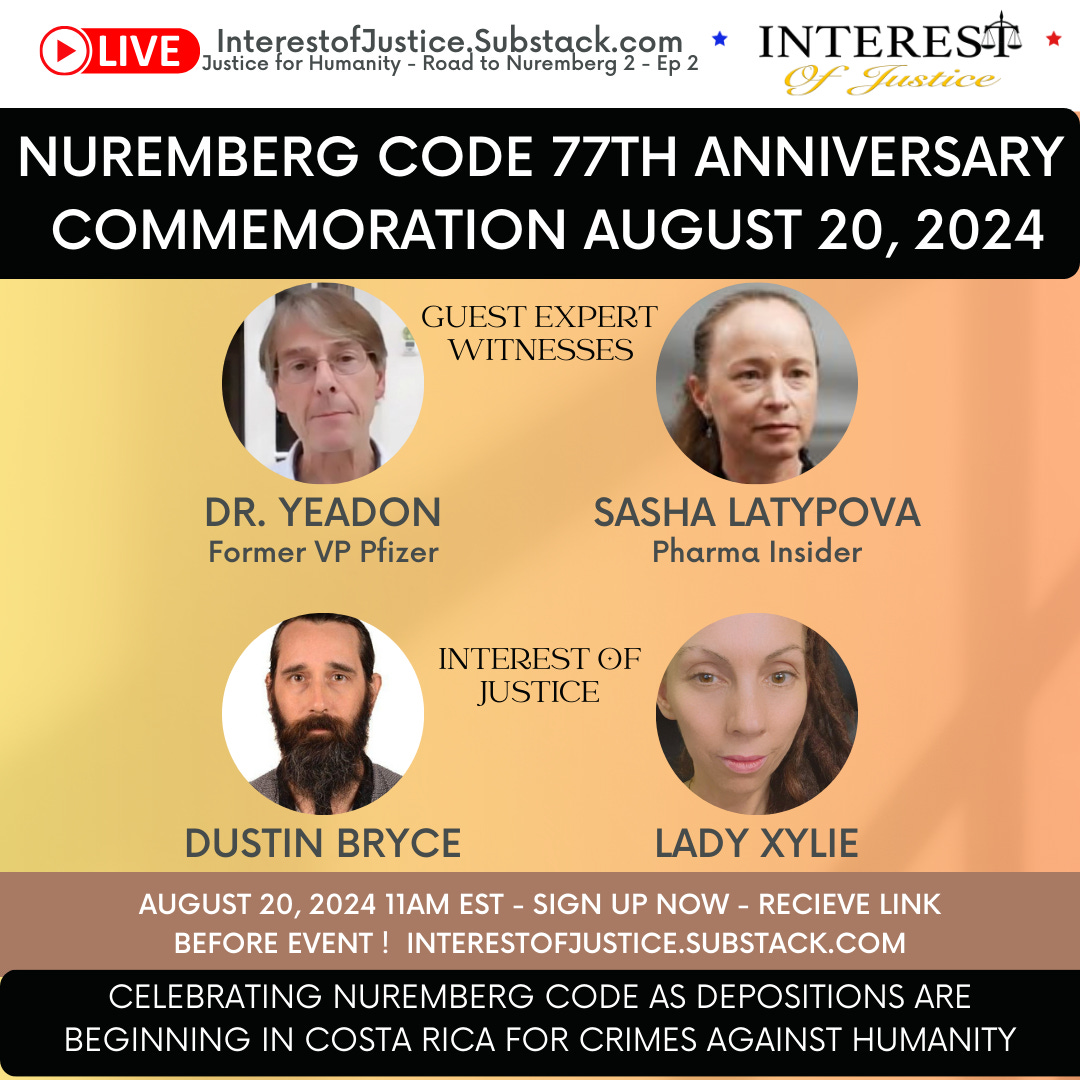 Notice first: Dr. Yeadon, Sasha Latypova & IOJ Invite You To Celebrate The Restoration Of Nuremberg Code Ethics & Human Rights With Us Tomorrow. See more below