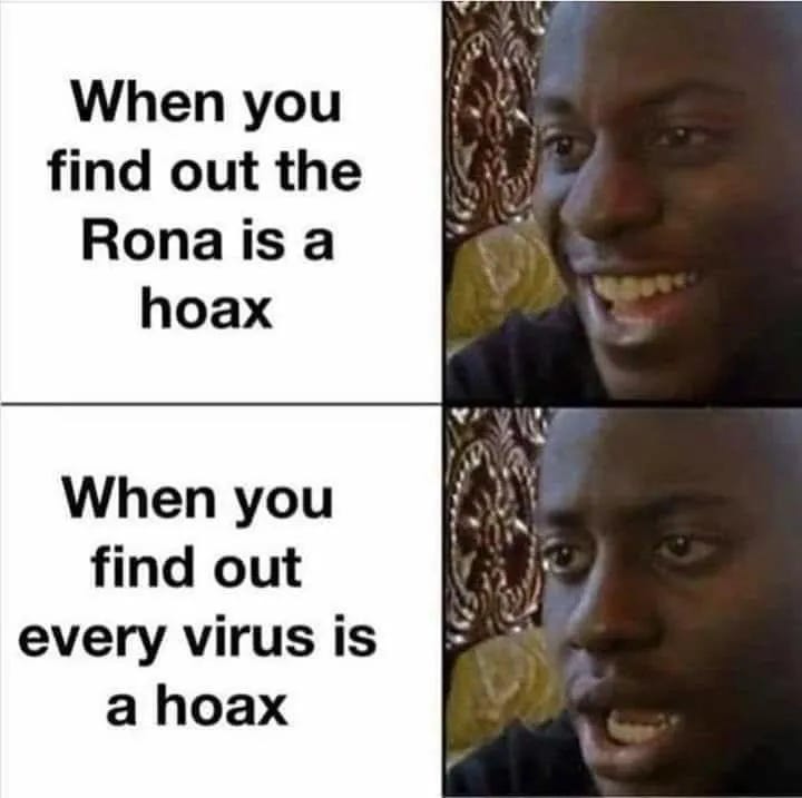 2. There’s no scientific evidence for the existence of viruses, anyway. And see 1.