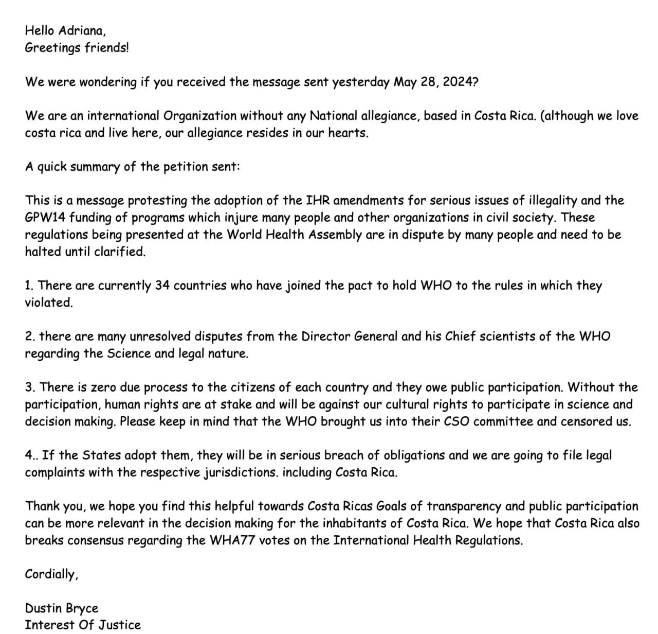 Let's hope this spreads to other countries...it very well could...and maybe even a few red states, if they can get autonomy somehow...who knows. In any case, Costa Rica - may it be the first of many countries to wake up to this evil and not allow it in.