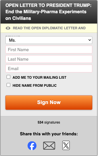 IOJ URGENT 911 OPEN LETTER TO PRESIDENT TRUMP: End the Military-Pharma Experiments on Civilians NOW! Sign & Share Far & Wide!