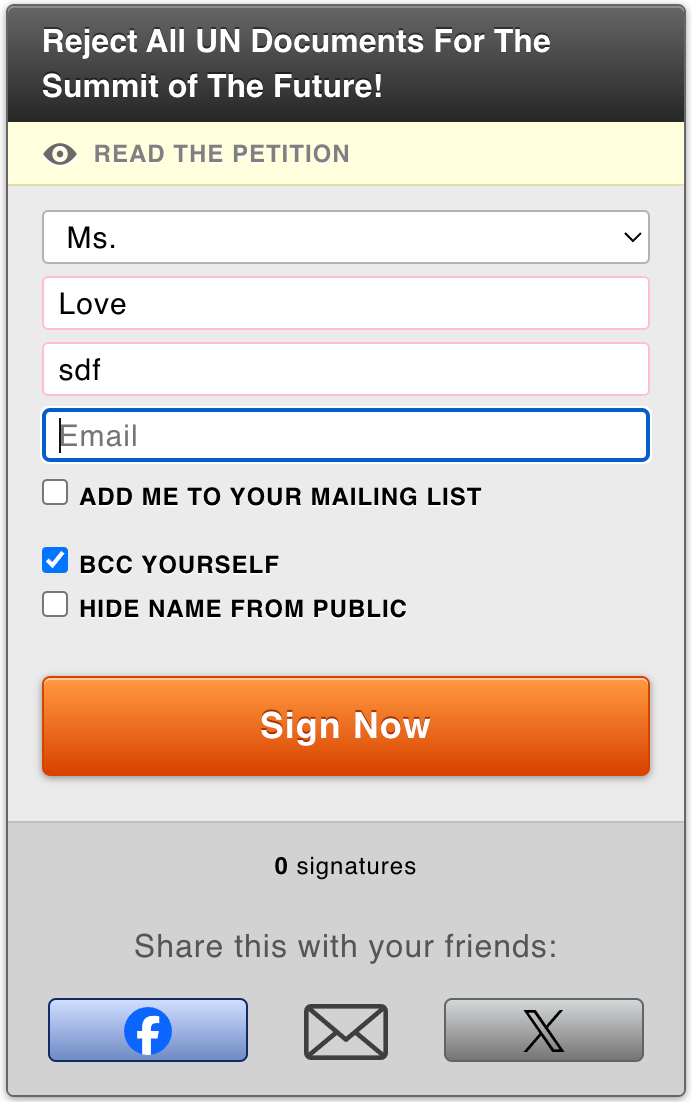 Sign Demand Below To Tell Member States and UN To Reject All UN Documents For Summit Of The Future