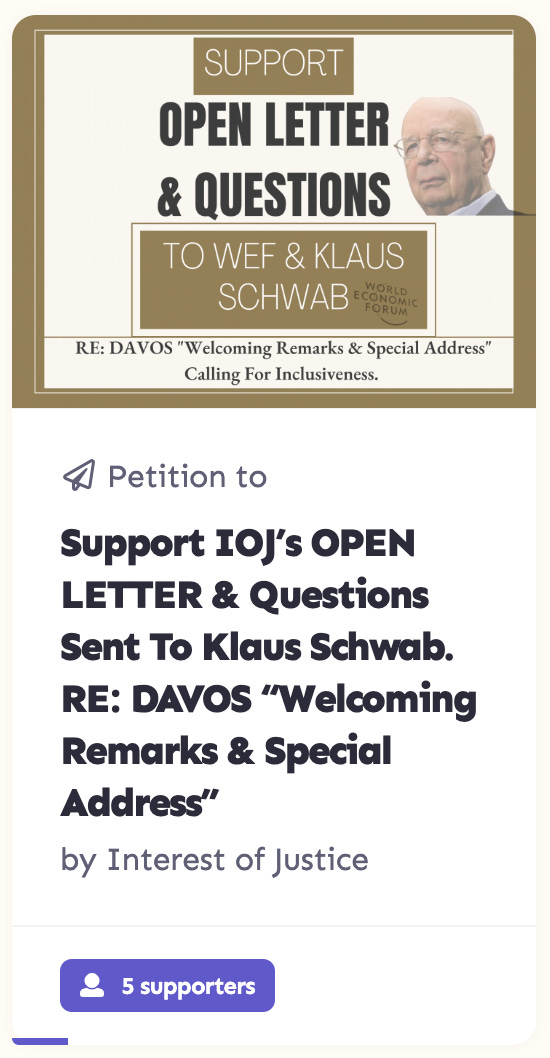 OPEN LETTER & QUESTIONS Sent To Klaus Schwab & WEF. RE: DAVOS "Welcoming Remarks & Special Address" Calling For Inclusiveness.