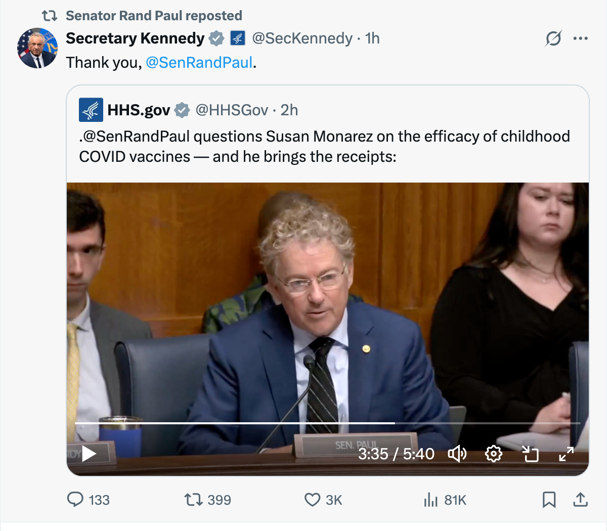 But Paul wasn't done. Oh no, he was just getting started. He shifted to what should concern every parent! What's the actual risk-benefit for children? When Paul asked if COVID vaccines reduce hospitalization for kids under 18, Monarez could only manage a weak "It can."