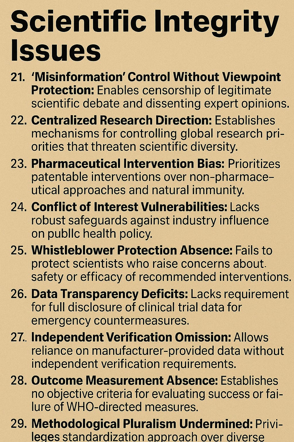 "Misinformation" Control Without Viewpoint Protection: Enables censorship of legitimate scientific debate and dissenting expert opinions.