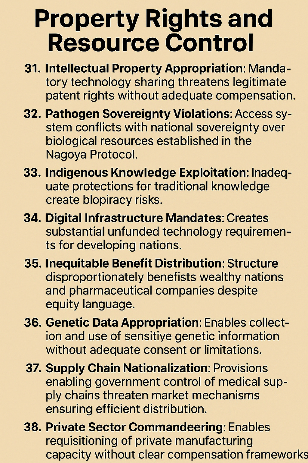 Pathogen Sovereignty Violations: Access system conflicts with national sovereignty over biological resources established in the Nagoya Protocol.