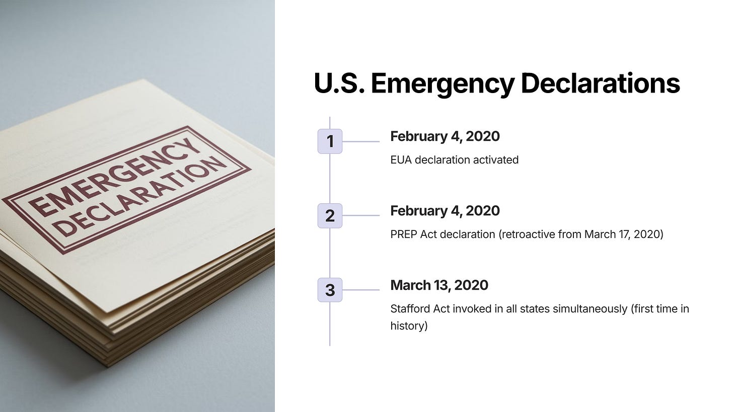 March 13, 2020 Stafford Act in all states simultaneously (1st time in history) [ref]