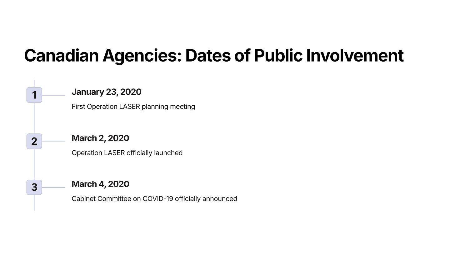 January 23, 2020: first Operation LASER planning meeting [ref]
