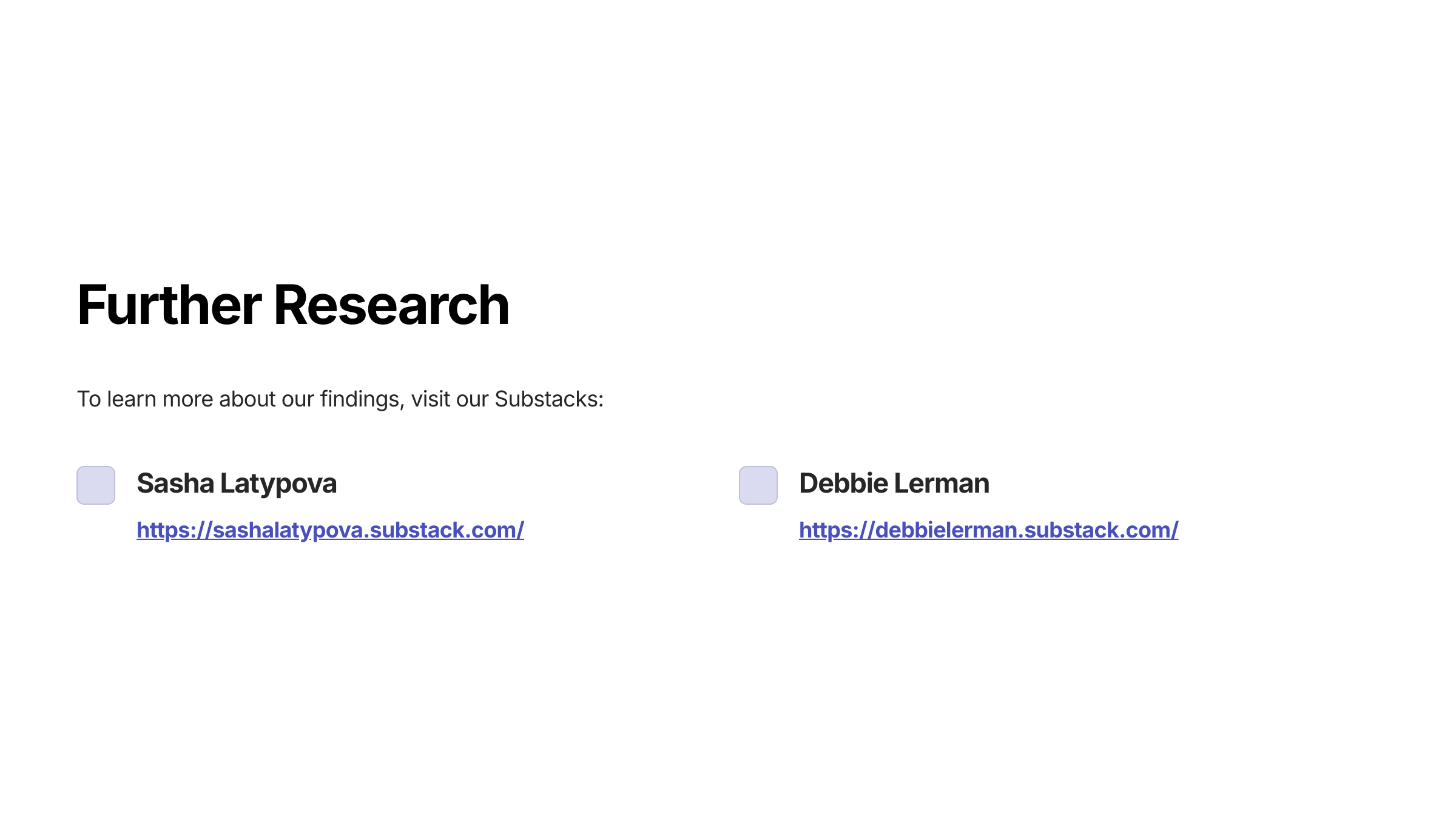 To learn more, you’ll find extensive research and analysis on our Substacks: