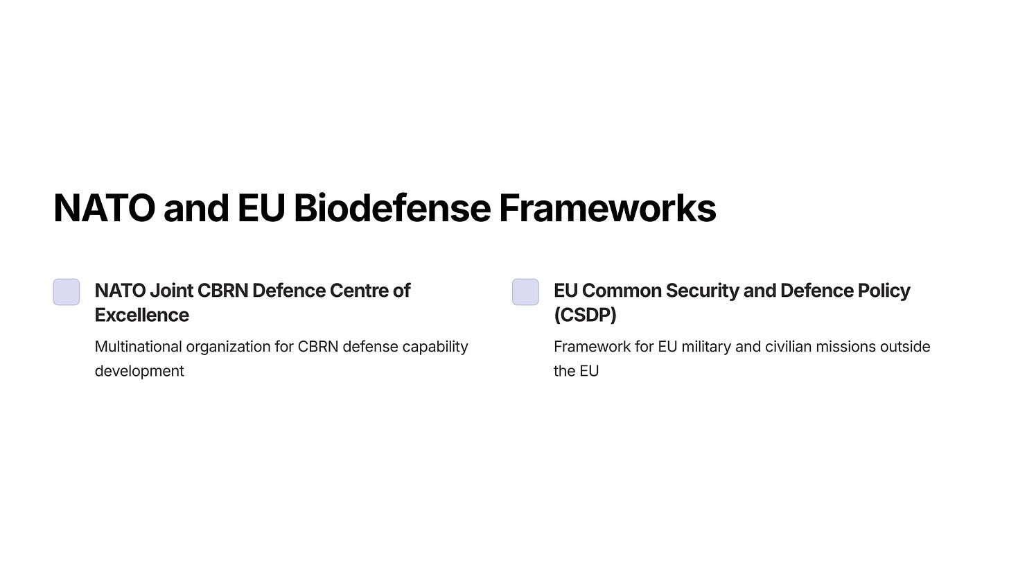Military/intelligence/biodefense plans & alliances