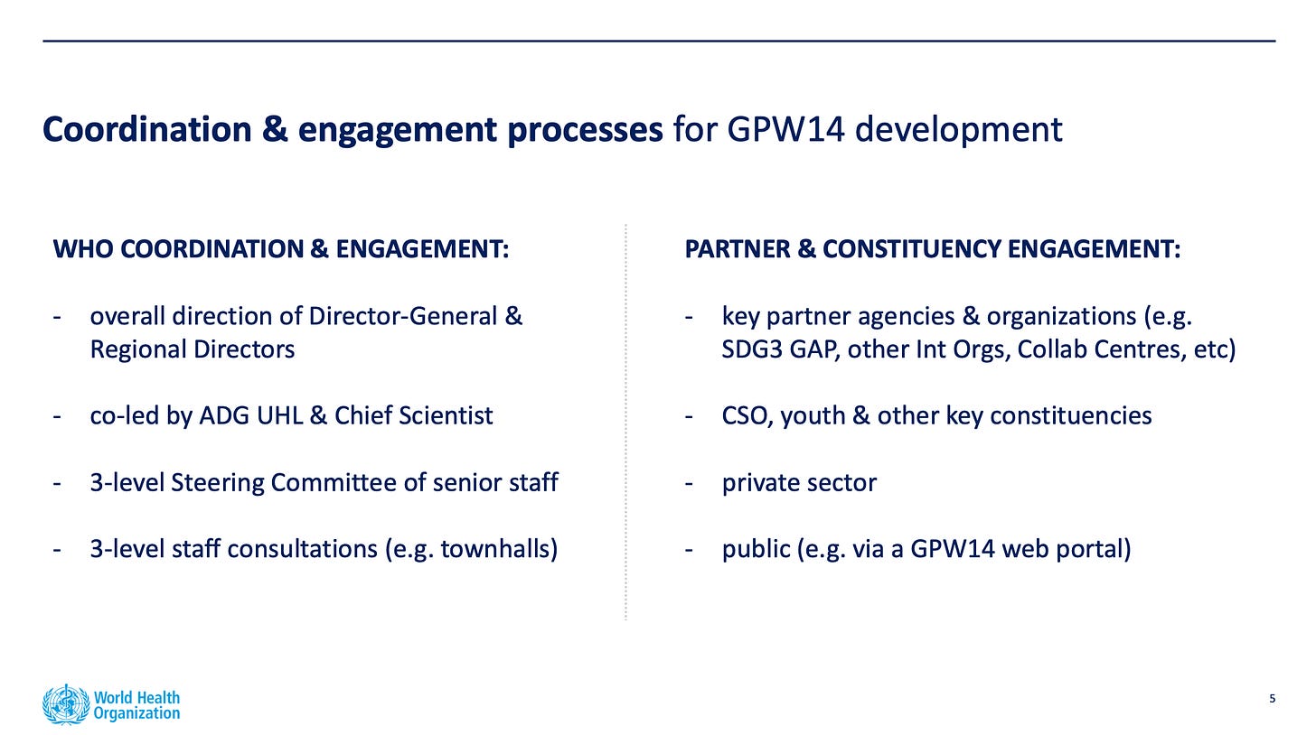 Here is the newest invite from WHO to consult on the GPW14, financing and policies 2025-2028 to be negotiated at the WHA77 in May 2024, a full year early: