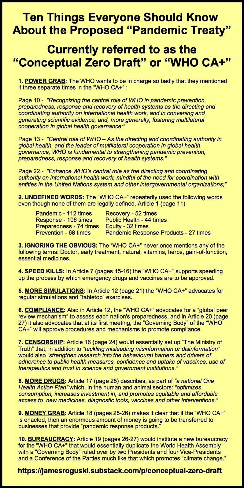 In our opinion the current “Conceptual Zero Draft” of the proposed “Pandemic Treaty”, as written thus far, is intended to result in more POWER, LESS HUMAN RIGHTS MECHANISMS AND FORCED FUNDING BY MEMBER STATES for WHO!